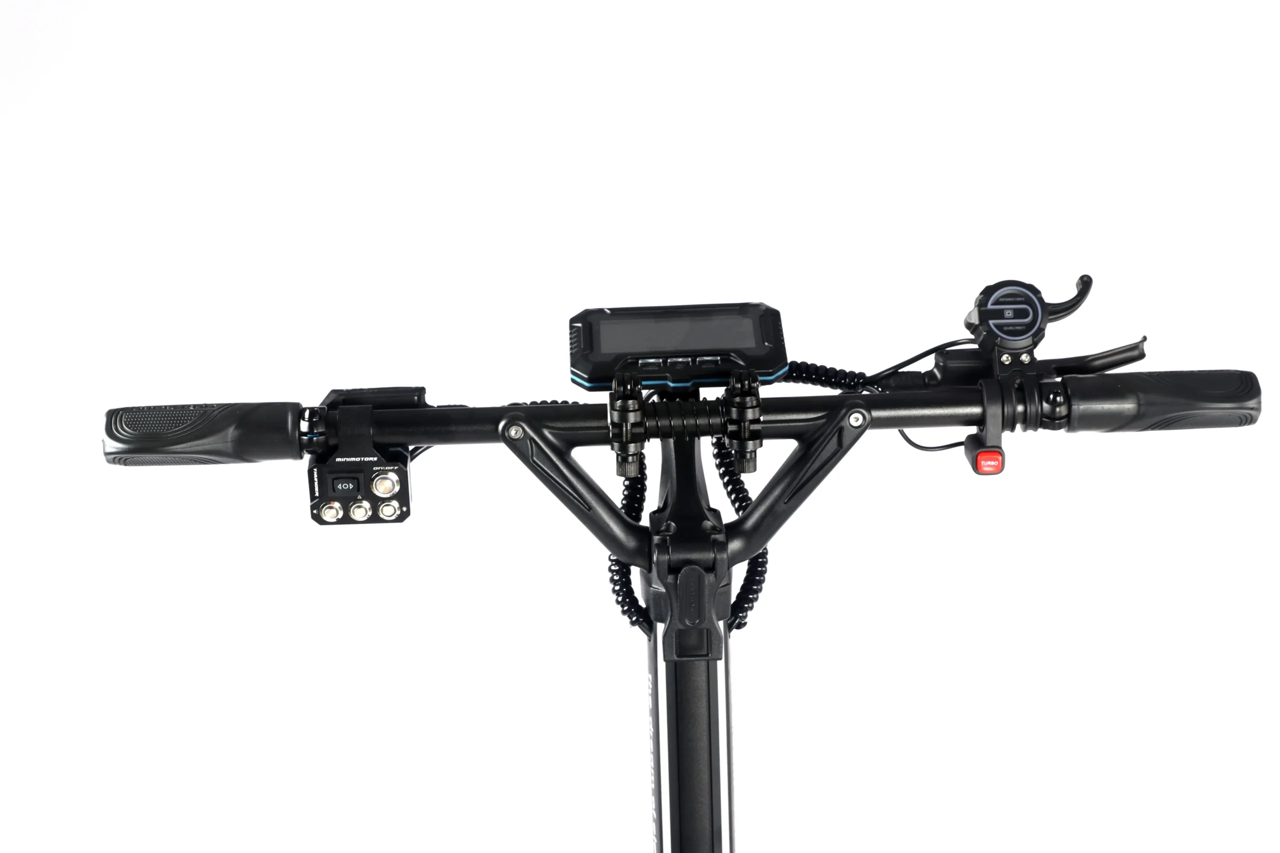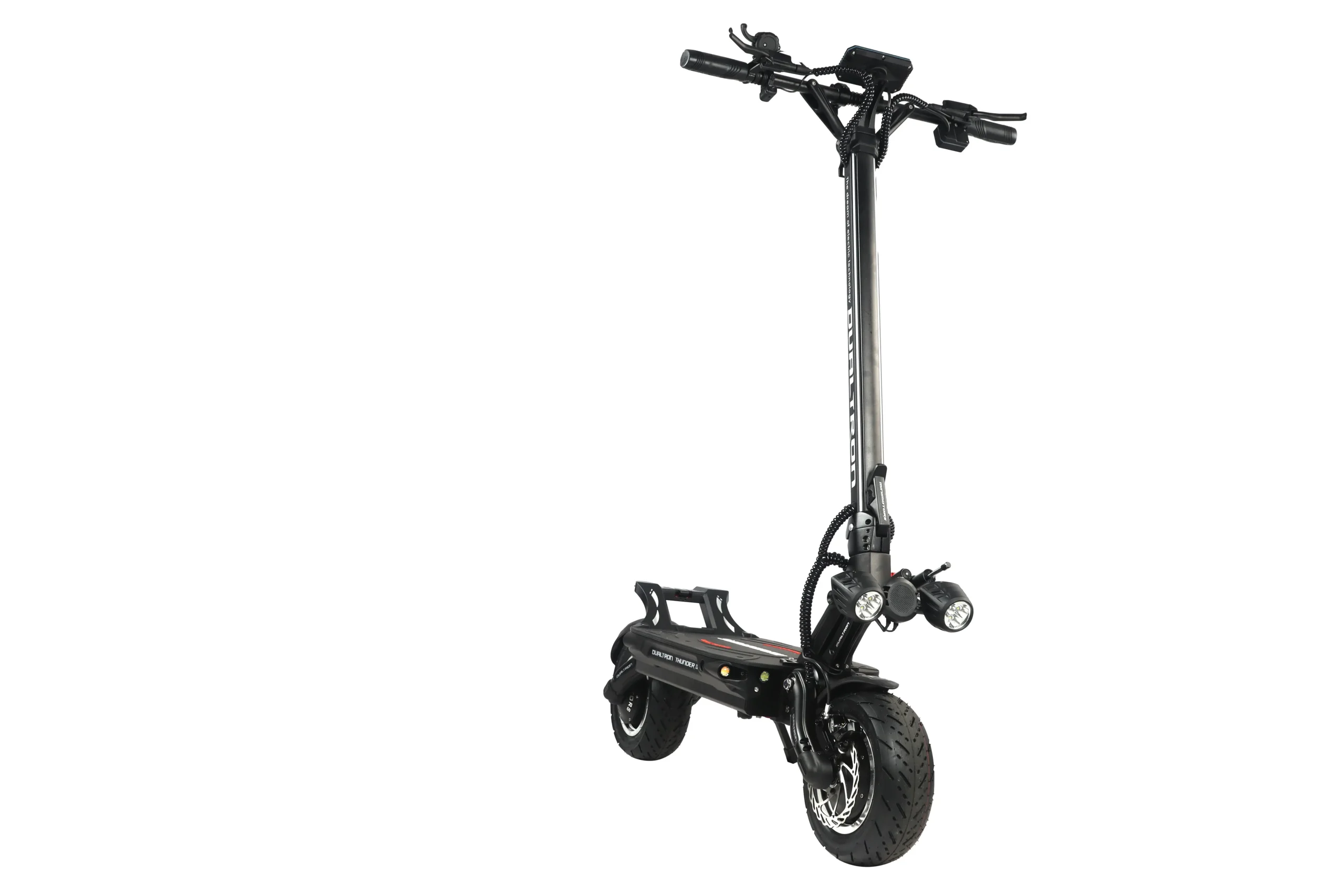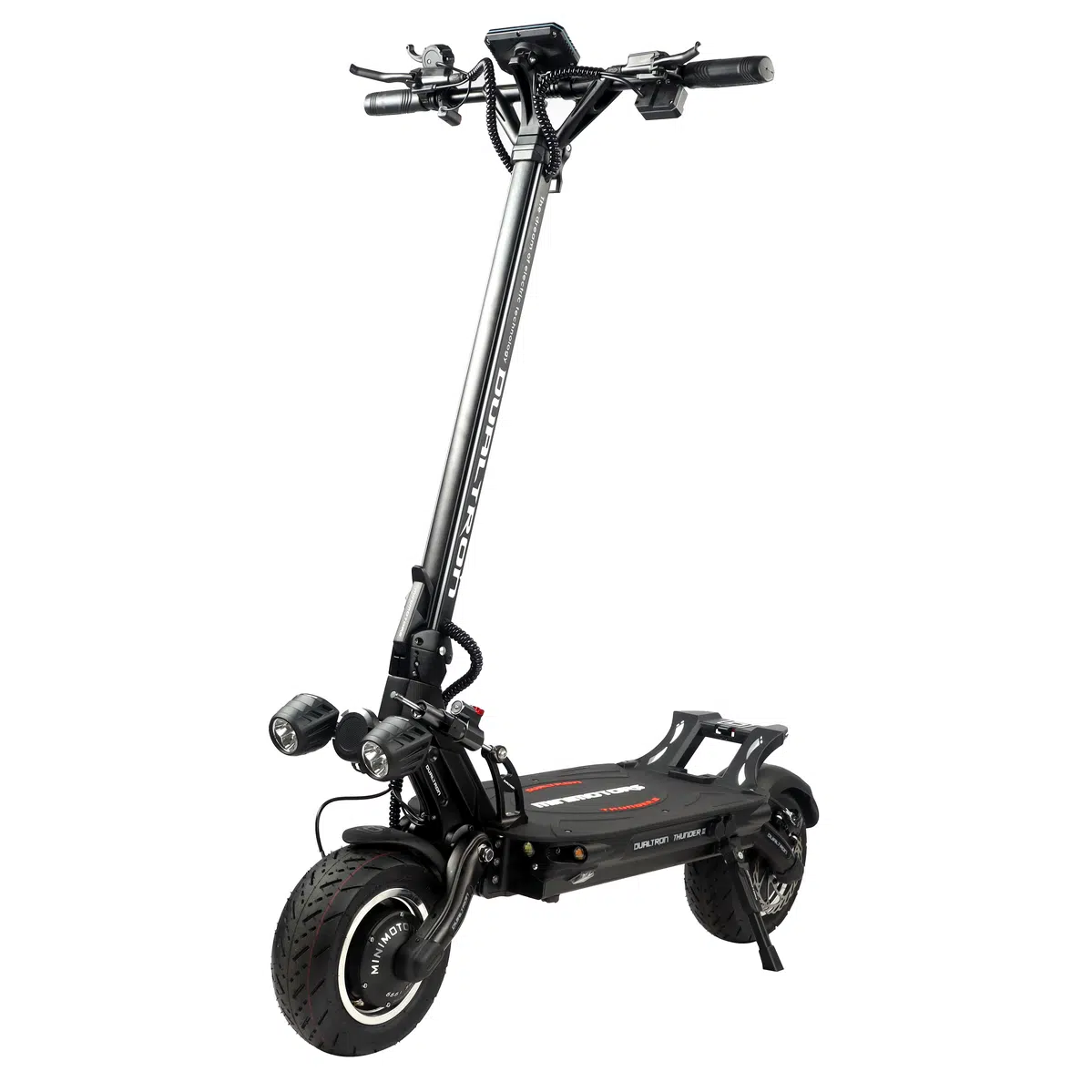 The Dualtron Thunder 3 is the ultimate fusion of raw power, refined engineering, and cutting-edge technology. Powered by a formidable 72V40Ah Samsung battery and dual 2500W motors, it delivers breathtaking acceleration and a top speed of around 62 mph (100 km/h). With a maximum range of up to 78 miles (125 km), this scooter redefines what’s possible on two wheels, whether you’re taking on challenging terrains or enjoying long-distance rides. Its advanced front and rear adjustable suspension system paired with 11 inch runflat tyres ensures a smooth and controlled ride across all surfaces, while the NUTT hydraulic brakes with ABS and EBS provide uncompromising stopping power.
