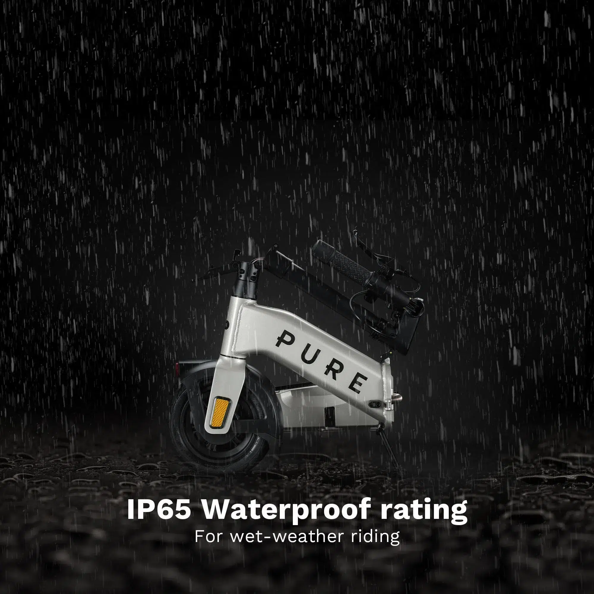 All PURE scooters have fantastic Water Resistant ratings which makes them ideal for UK weather and climate.ย
